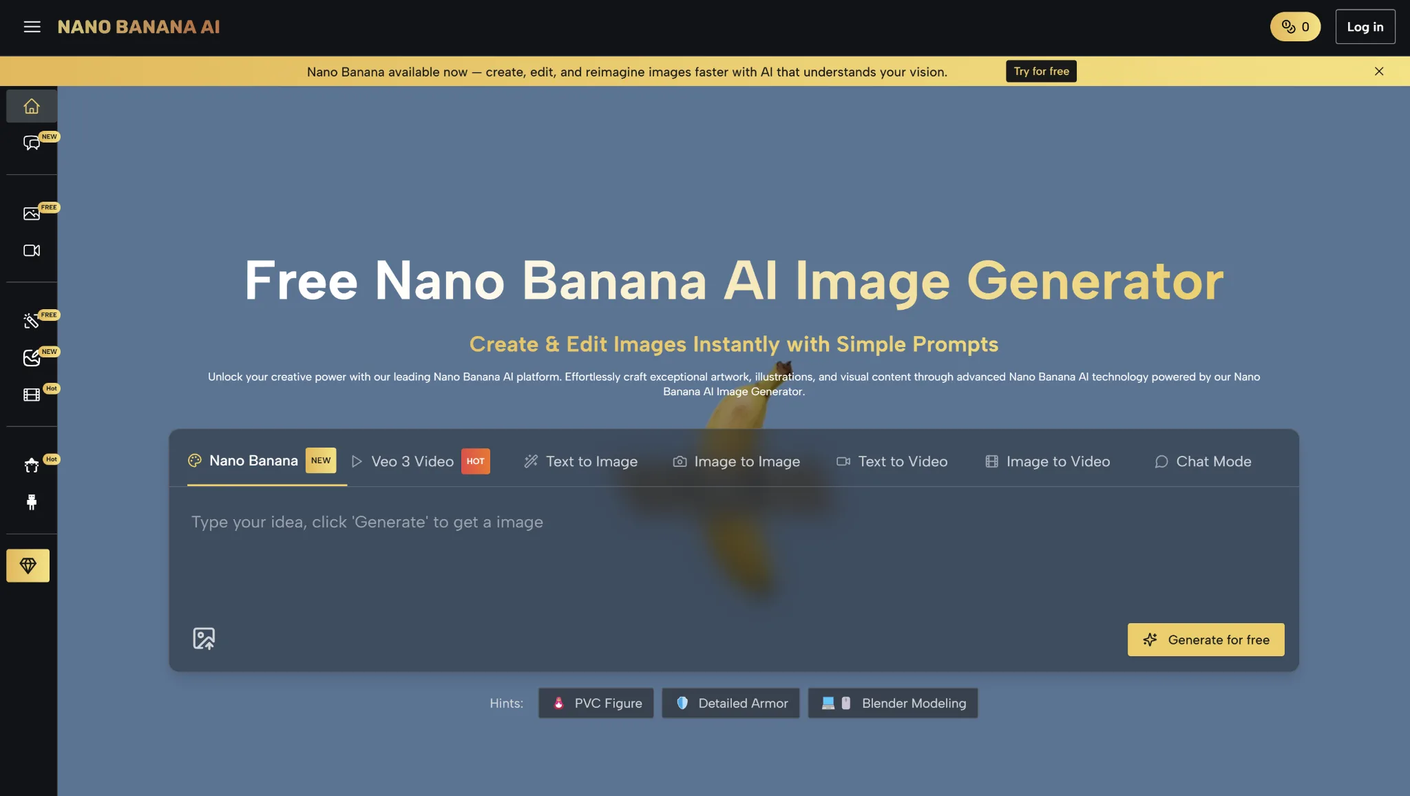 BananaImg AI,不僅操作順暢,還提供免費試用Nano Banana AI生成圖片的機會,新用戶可以多次體驗。