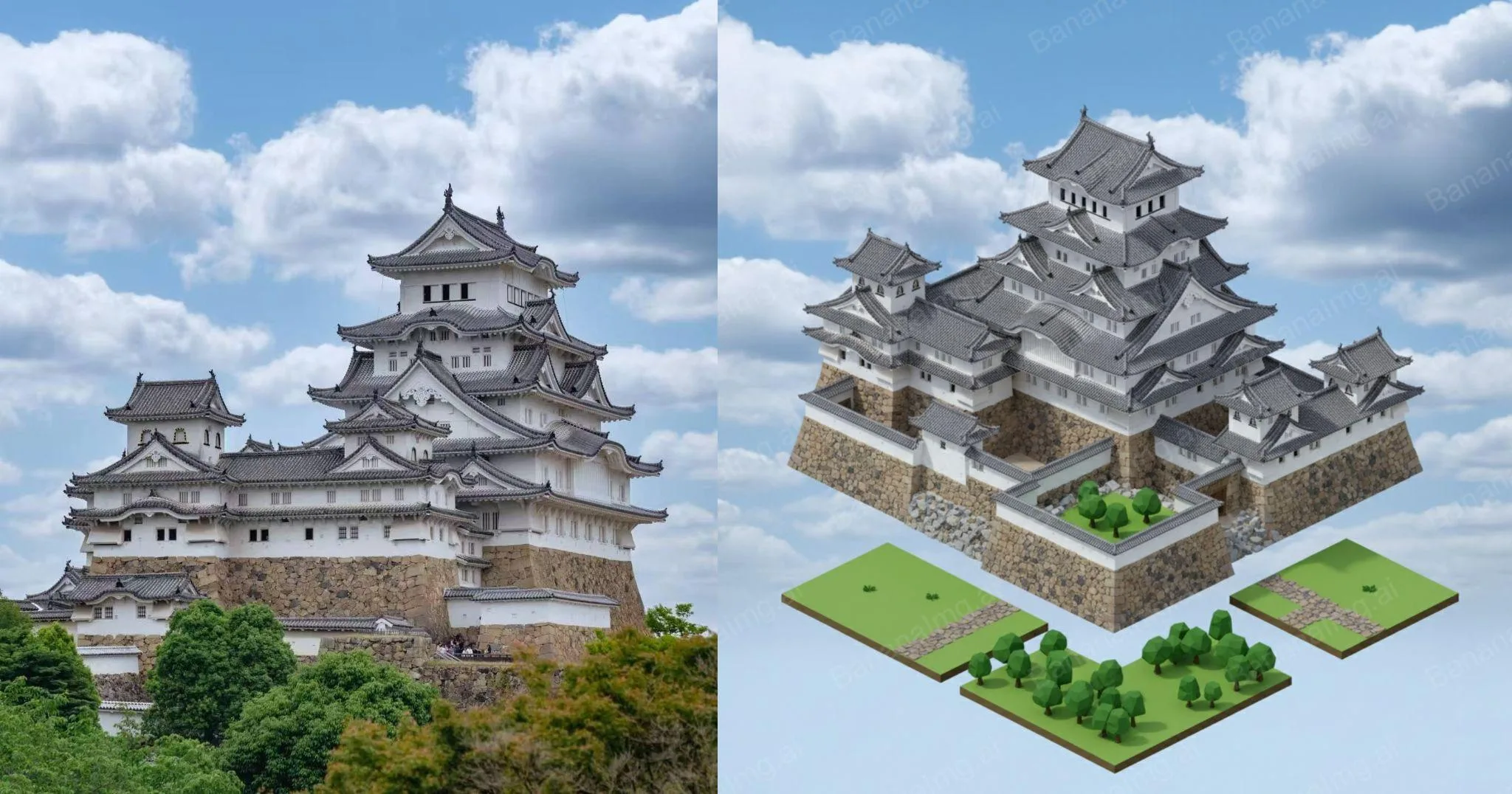 BananaImg AI,把真實建築轉換成可愛的3D模型。