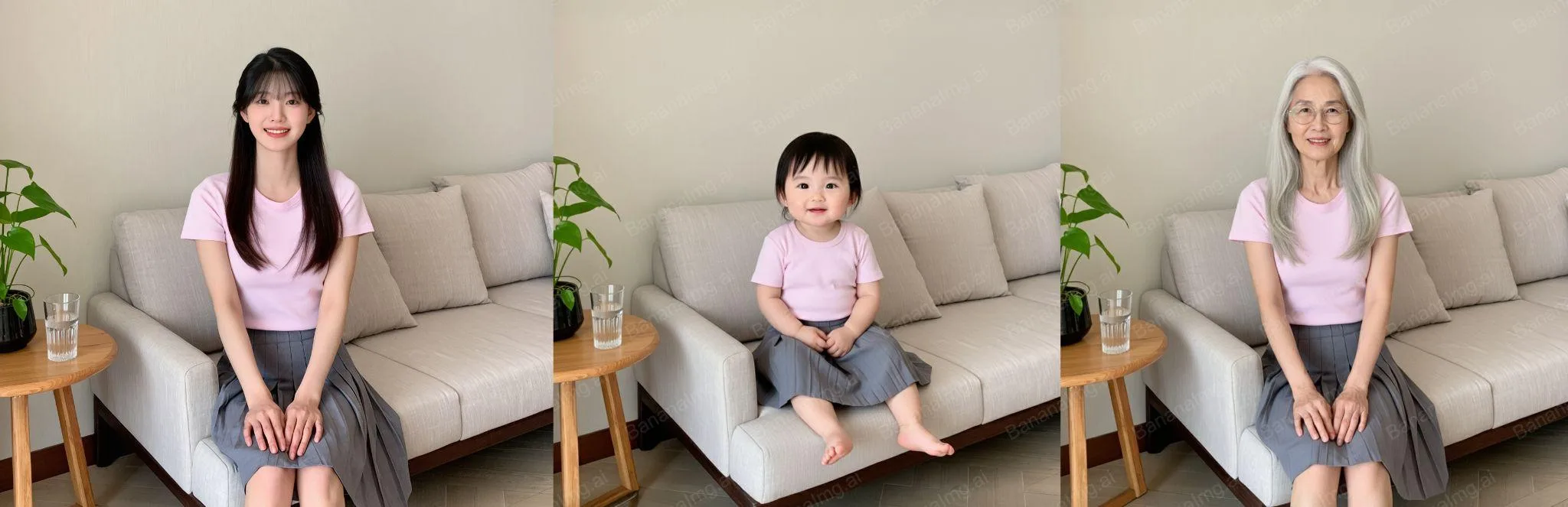 BananaImg AI,模擬人物在不同年齡段的樣貌。