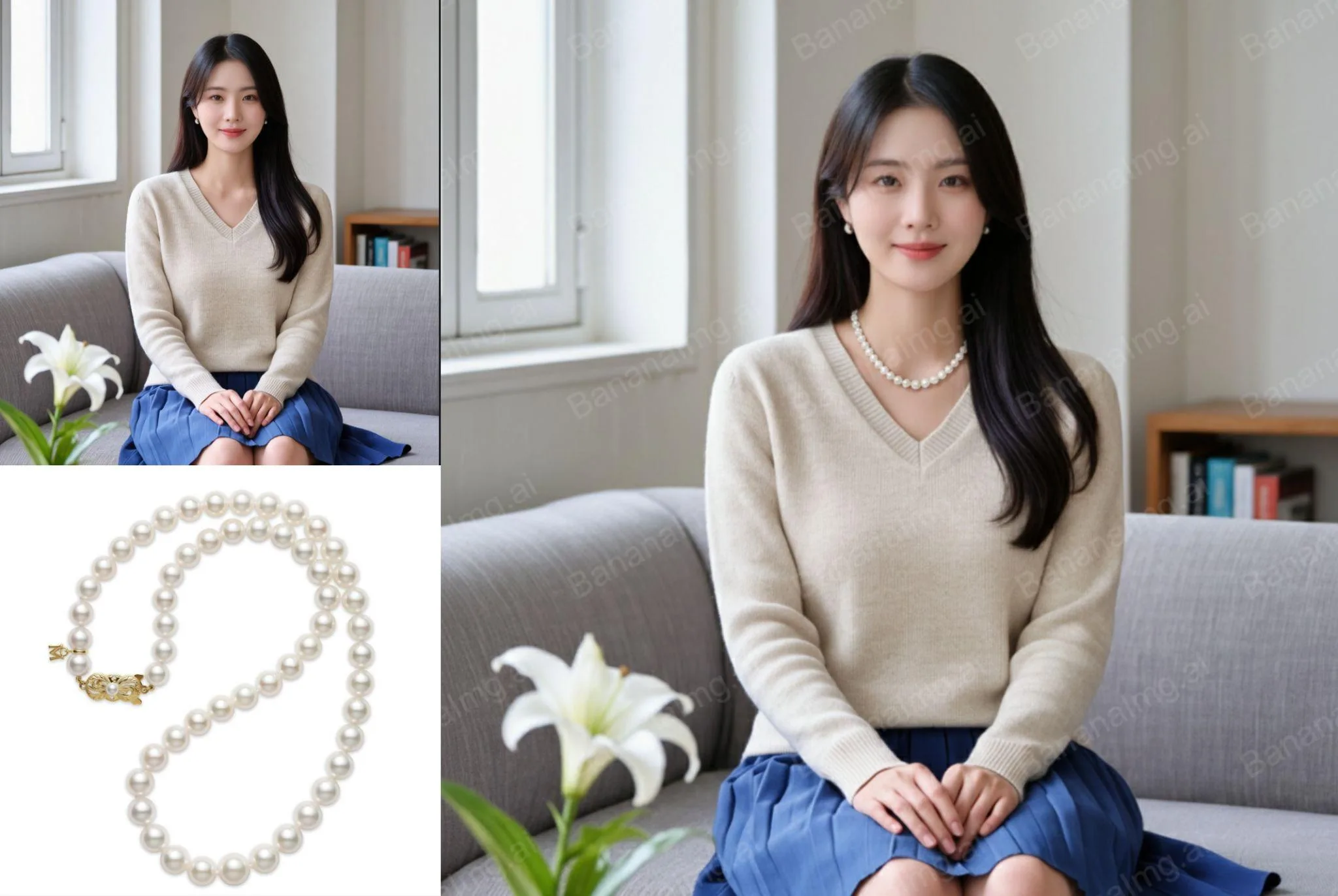 BananaImg AI,為模特添加不同的珠寶飾品。