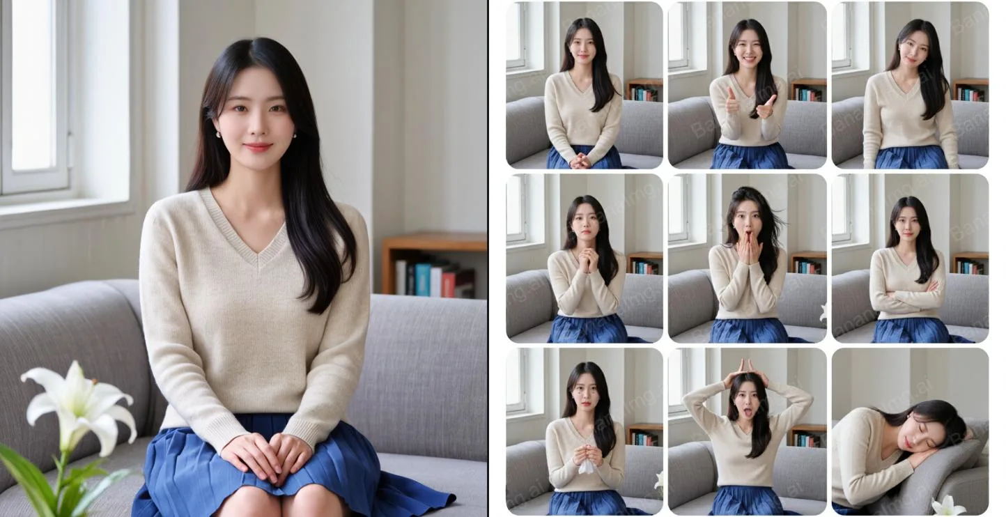 BananaImg AI,保留人物特徵,切換不同姿勢。