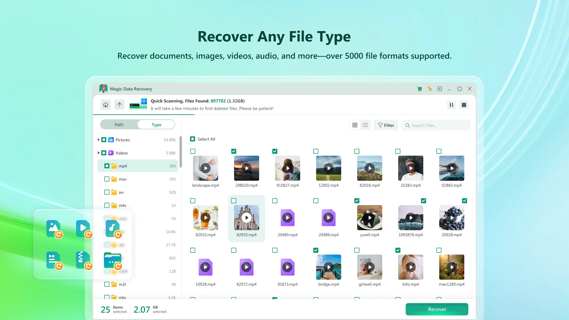 - 提供檔案預覽,使用者可確認檔案完整性再恢復。