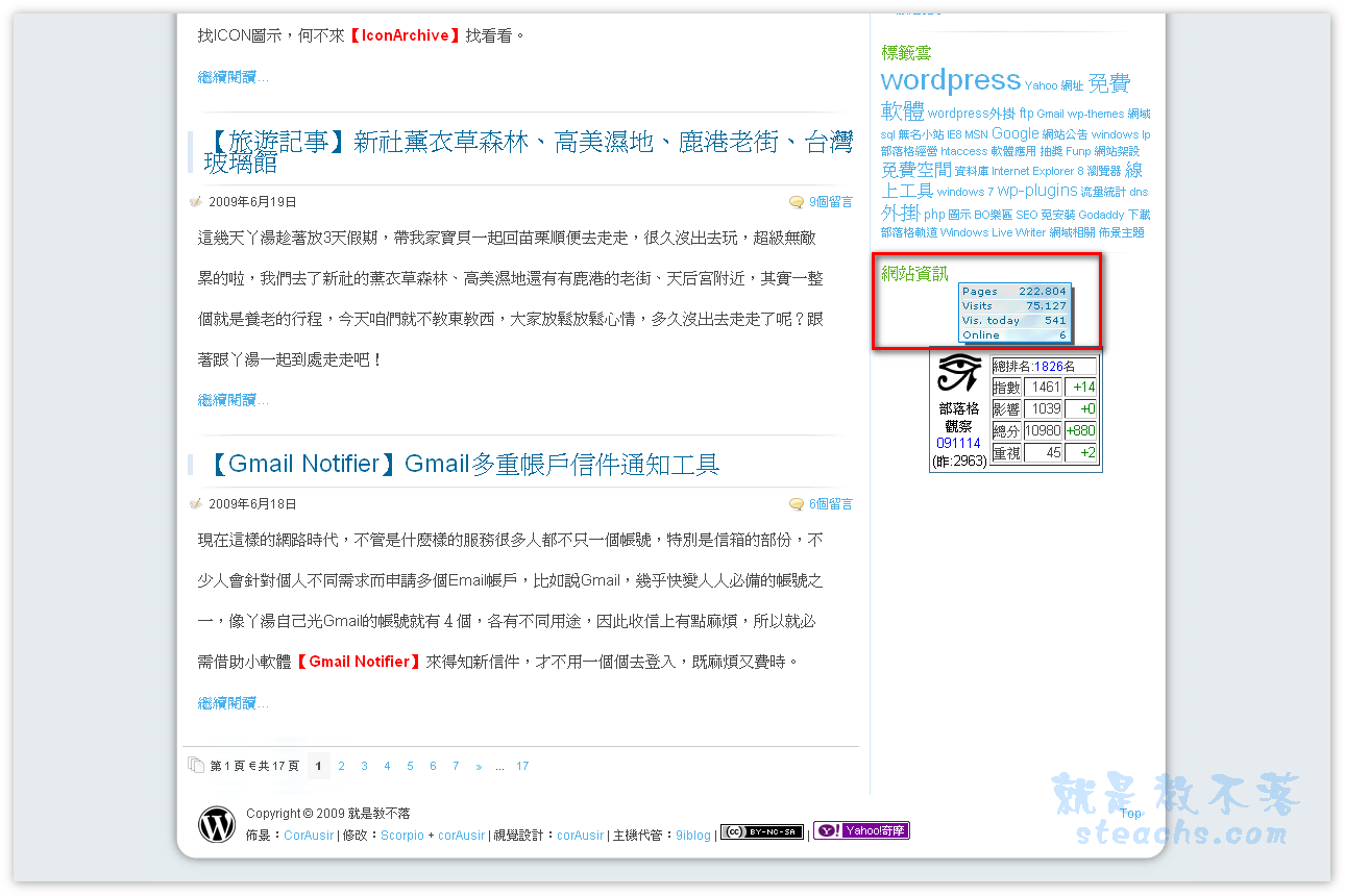 將畫面拉至部落格計數器處,以〝全螢幕〞方式截圖,範例如下: