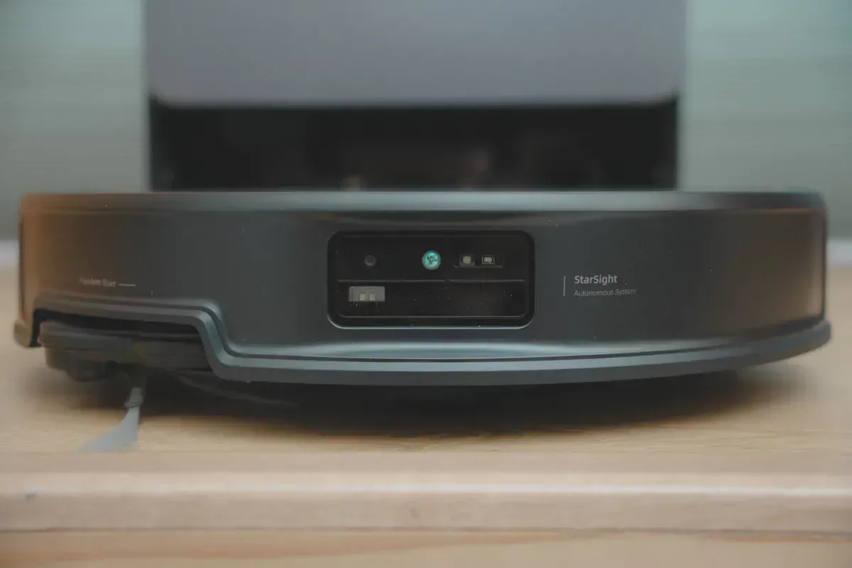 從正面來看可以看到 StarSight 星陣導航系統的標誌,Saros 20 採用的是 StarSight 2.0 版本,在使用的體感上,不論是空間地圖規劃、避障能力都沒話說,而且方的鏡頭同樣支援視訊通話以及相關寵物功能。