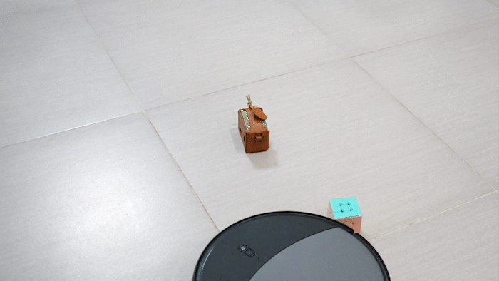 最後再試個跟掃地機差不多高度的物品,直接放二個,一樣輕鬆的避開。