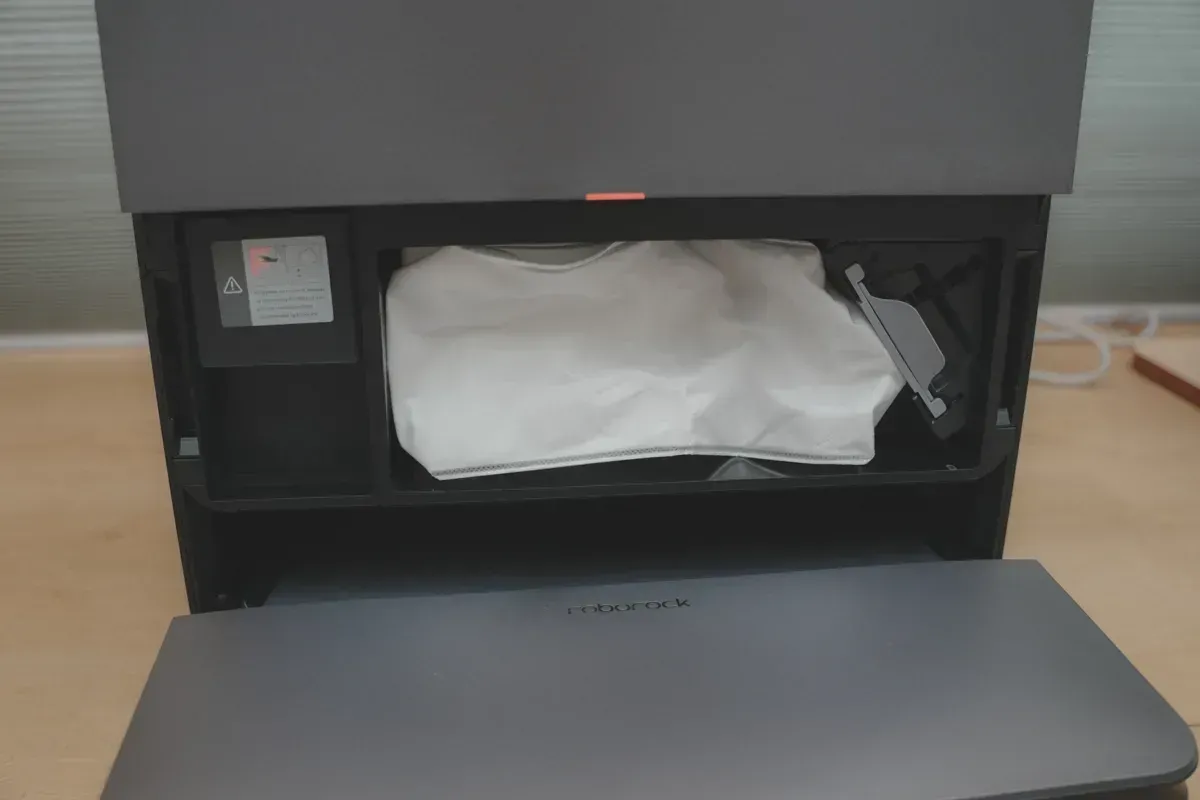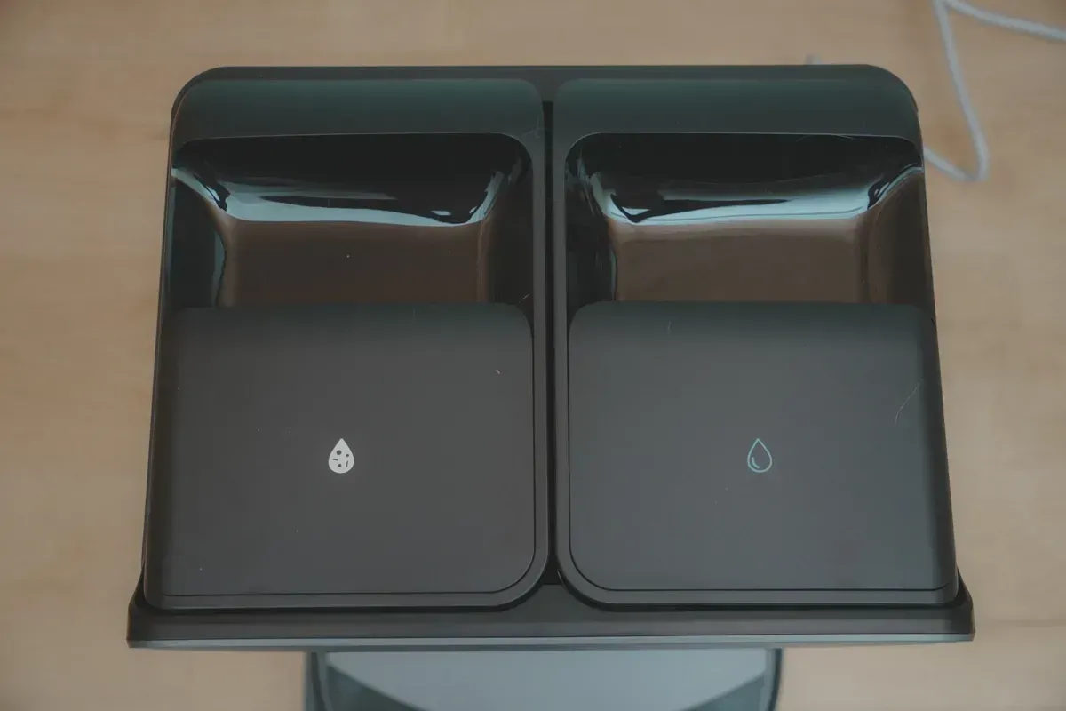 首先在前方開蓋後,這裡是拋棄式集塵袋,以及地板清潔劑盒,這邊我也大推薦用石頭自家推出的清潔劑,不要隨意亂加會比較好,而且很好用。
