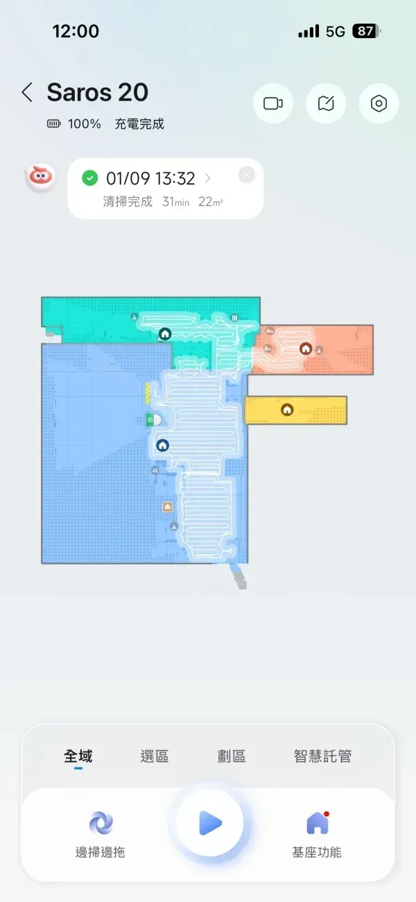 至於語音的部份,做為一款定位為旗艦的機型,當然也是必備的,直接就可以用語音操控,記得要做好分區,就可以快速透過語音指定掃哪一區,絕對是掃地機中最實用的功能之一。